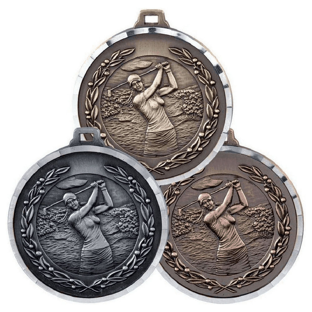50mm Diamond Edged Female Golf Medal (Bronze)