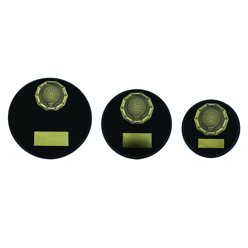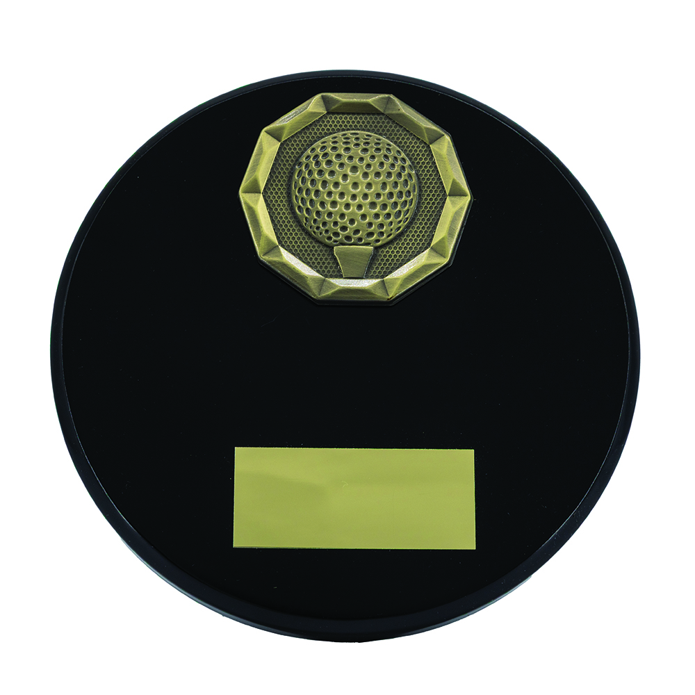 Black Wood Effect Plaque + Gold Golf Trim