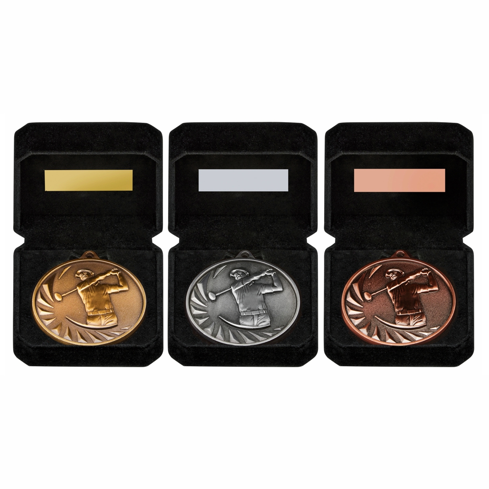 Gold 70mm Male Golf Medal in Luxury Case