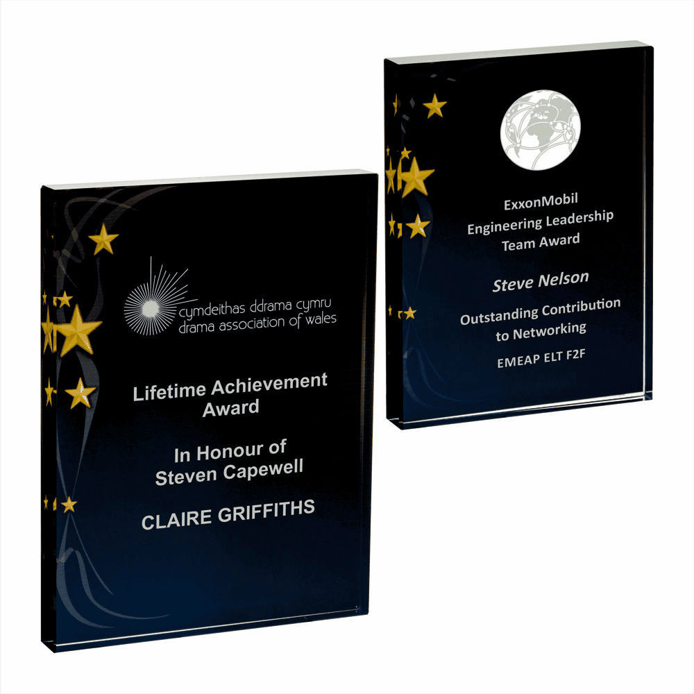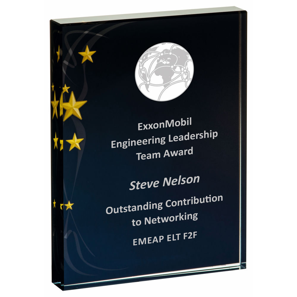 Rectangular Glass Award – Black Background with Gold Stars