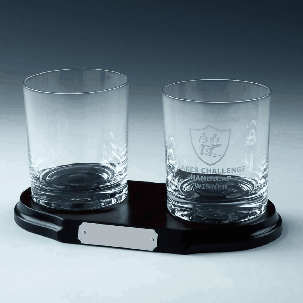 Two Spirit Glasses on Wood Stand