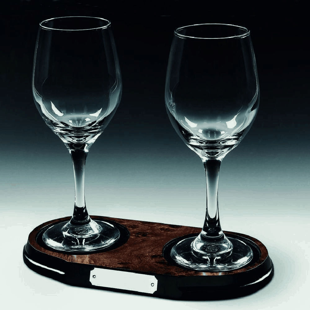 Two Wine Glasses on Wood Stand